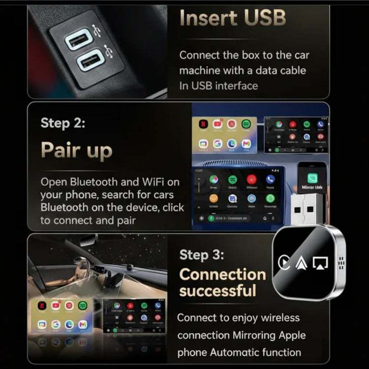Plug the adapter and enjoy wireless CarPlay within seconds - no complex setup needed.Convert your factory wired CarPlay to wireless without replacing your car's system.