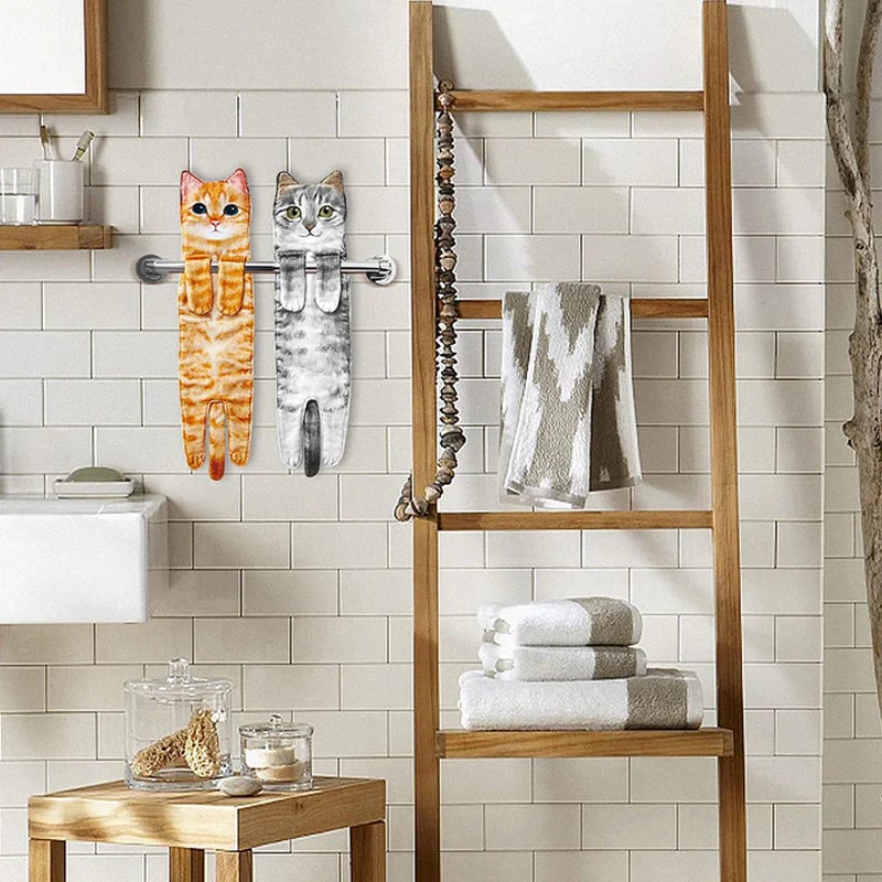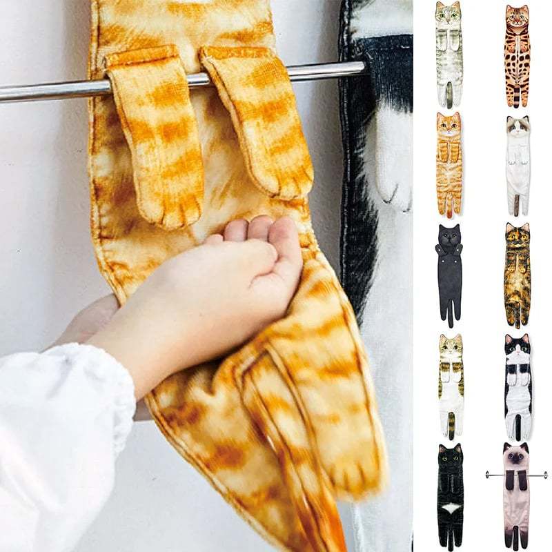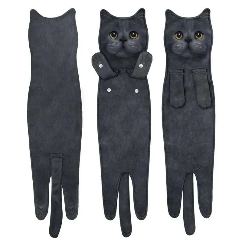 [High-Quality Fabric] the fabric is soft, comfortable, and highly absorbent, suitable for drying hands and faces.The cat head is made of special material, allowing it to stay upright when hung!