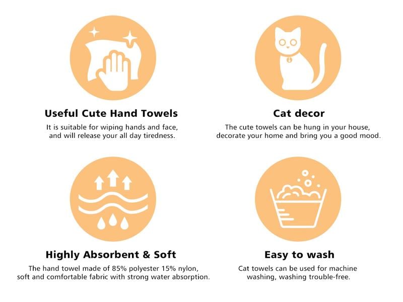 [Cute Cat Design] These hand towels feature funny cat designs with snap buttons to prevent slipping. They're soft to touch, giving you a comforting feel like touching a cat's belly!Cat towels are irresistibly cute, making you want to hug them!