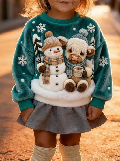 ❤️Buy 3 Get 12% OFF❤️Cute Animal Print Sweatshirt For Kids - Highland Cow And Snowman