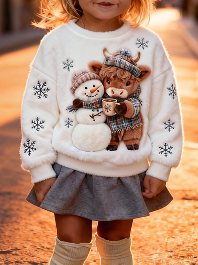 ❤️Buy 3 Get 12% OFF❤️Cute Animal Print Sweatshirt For Kids - Highland Cow And Snowman