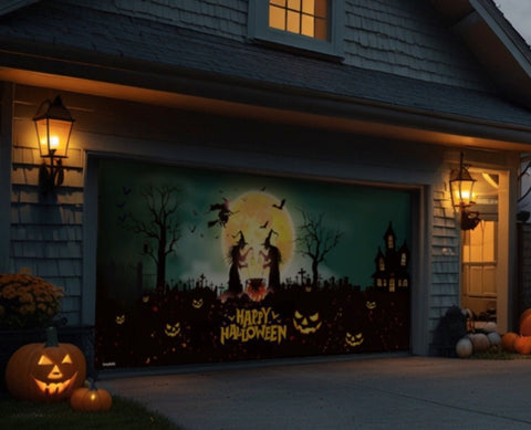 Transform your home from drab to fab-boo-lous in the spookiest way possible with our banners made out of the highest quality polyester mix fabric. At unbeatable prices, these Halloween garage door covers bring pure Halloween magic to your street. And guess what? Your garage door will still open and close as normal. No door drama here – just a creepy garage door cover that screams Halloween!