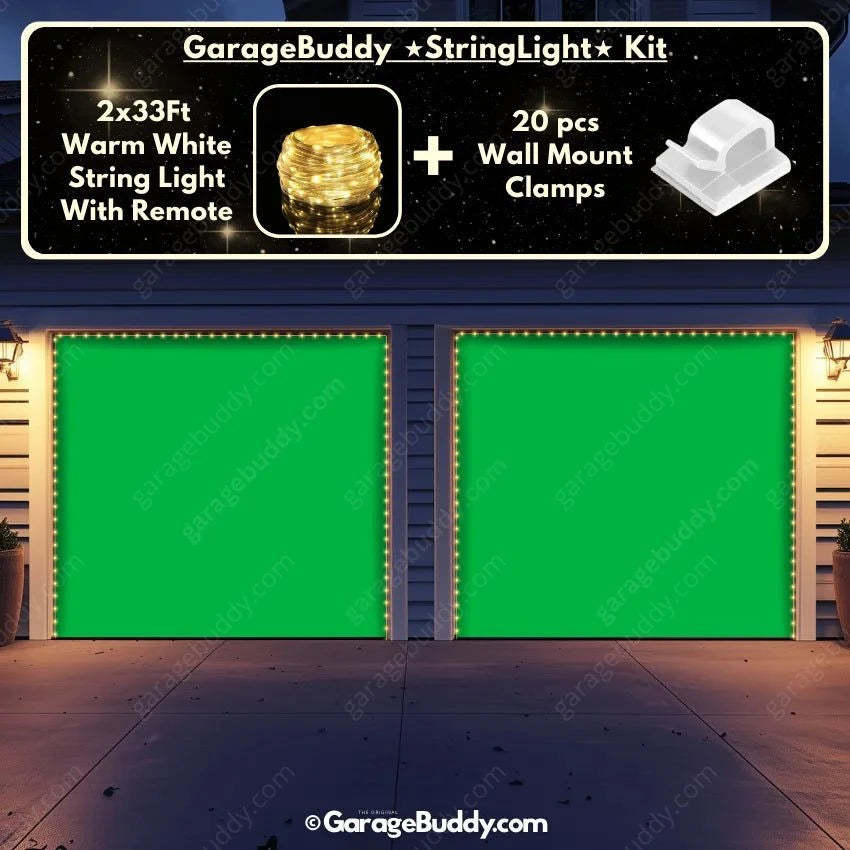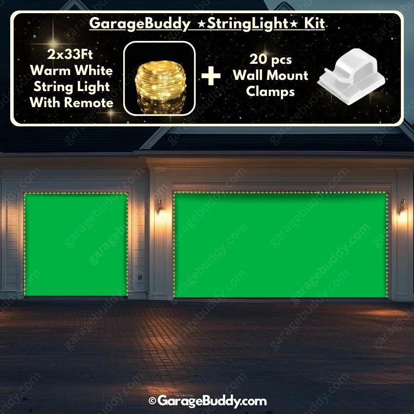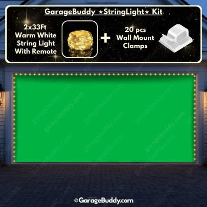 You now have the option to add the GarageBuddy string light kit to your order at 50% Off and turn your garage into a true show stopper. The kit includes 1x 33 ft warm white string light, a remote control, and 10x sticky wall mount clamps. The 2-door garage option comes with 2 string light kits. The lights work on three AA batteries (not included), so you don't need to run around finding electrical outlets.