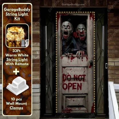 Unfold the Cover – Take your spooky cover out of the package. Stretch & Snap – Thanks to the elastic corners, all you need to do is stretch each one over your door’s top and bottom corners. No need for nails, tapes, or sticky mess. Just stretch and snap, and your door is instantly transformed into a haunting masterpiece.
